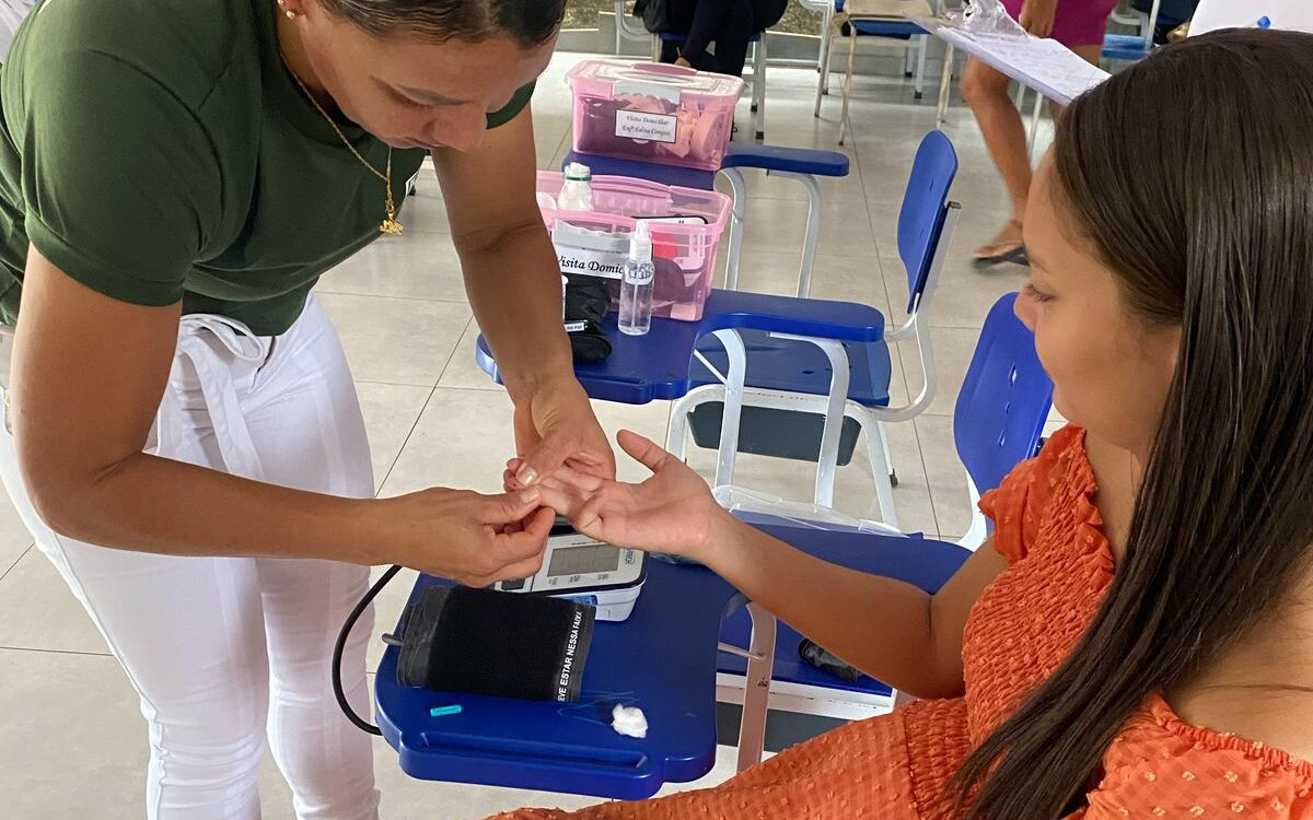 Durante a programação, as gestantes receberam aferição de sinais vitais e avaliação antropométrica, além de acompanharem uma série de palestras educativas e entrega de kits