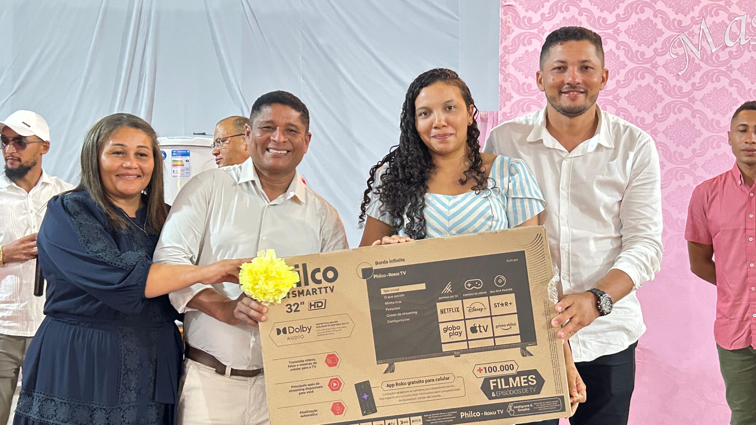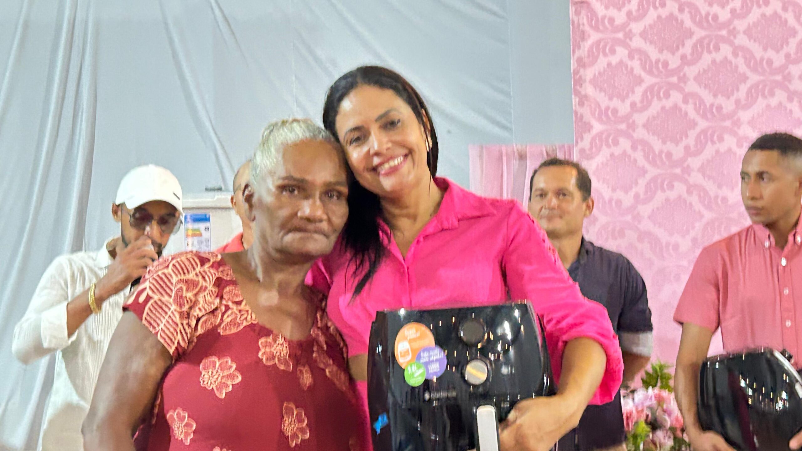 Dona Maria Helena foi uma das grandes contempladas da noite. Ao ouvir seu número, correu até o palco, ajoelhou-se chorando de emoção e agradeceu: “Eu só tenho que agradecer a Deus. Já estava triste, nada saía para mim. Falei: ‘Meu Deus, será que não vou ganhar nadinha?”, e olha, ele me deu uma geladeira! Estou muito feliz”, declarou, sendo amparada pela primeira-dama e pelo prefeito, que também se emocionaram com a cena.