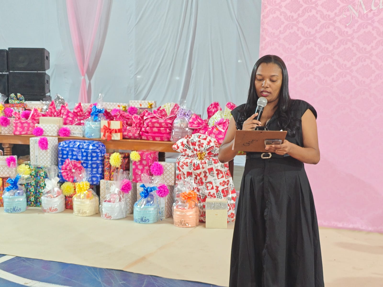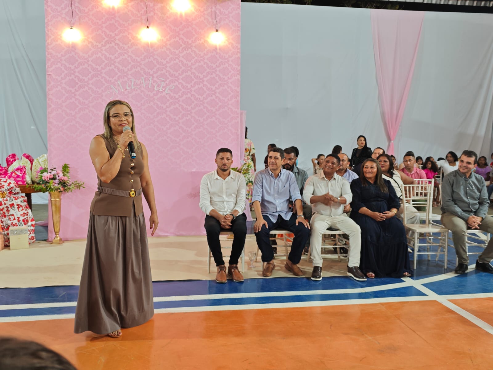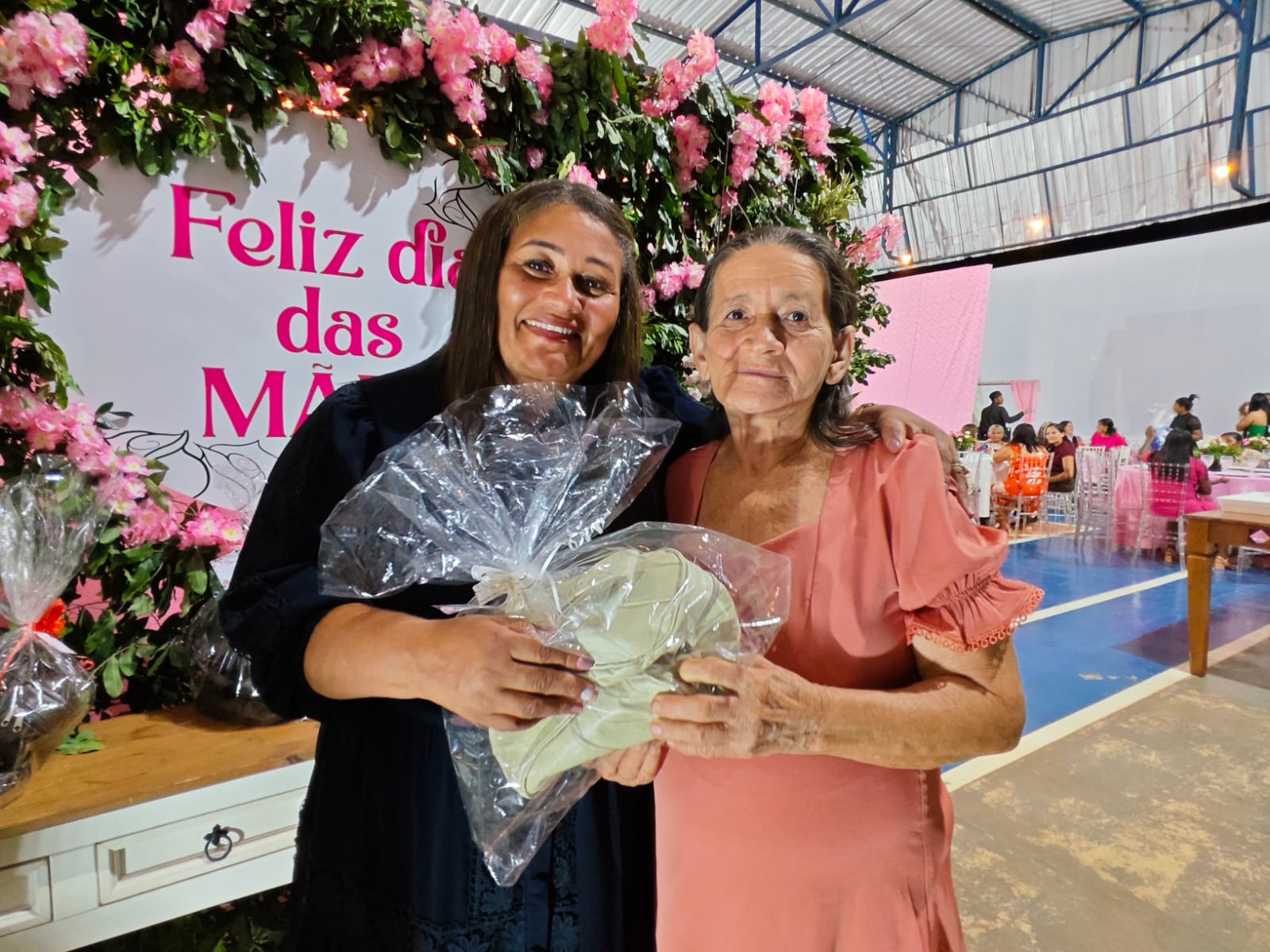 O ponto alto da comemoração aconteceu na noite do dia 10 de maio, na quadra de esportes do Colégio Estadual, que foi transformada em um cenário encantador. O espaço recebeu uma decoração caprichada, com muitas flores, cenários fotográficos e um palco repleto de presentes cuidadosamente organizados para homenagear as mães presentes. A atmosfera era de alegria, reconhecimento e gratidão, marcando um momento único para a comunidade de São Félix.
