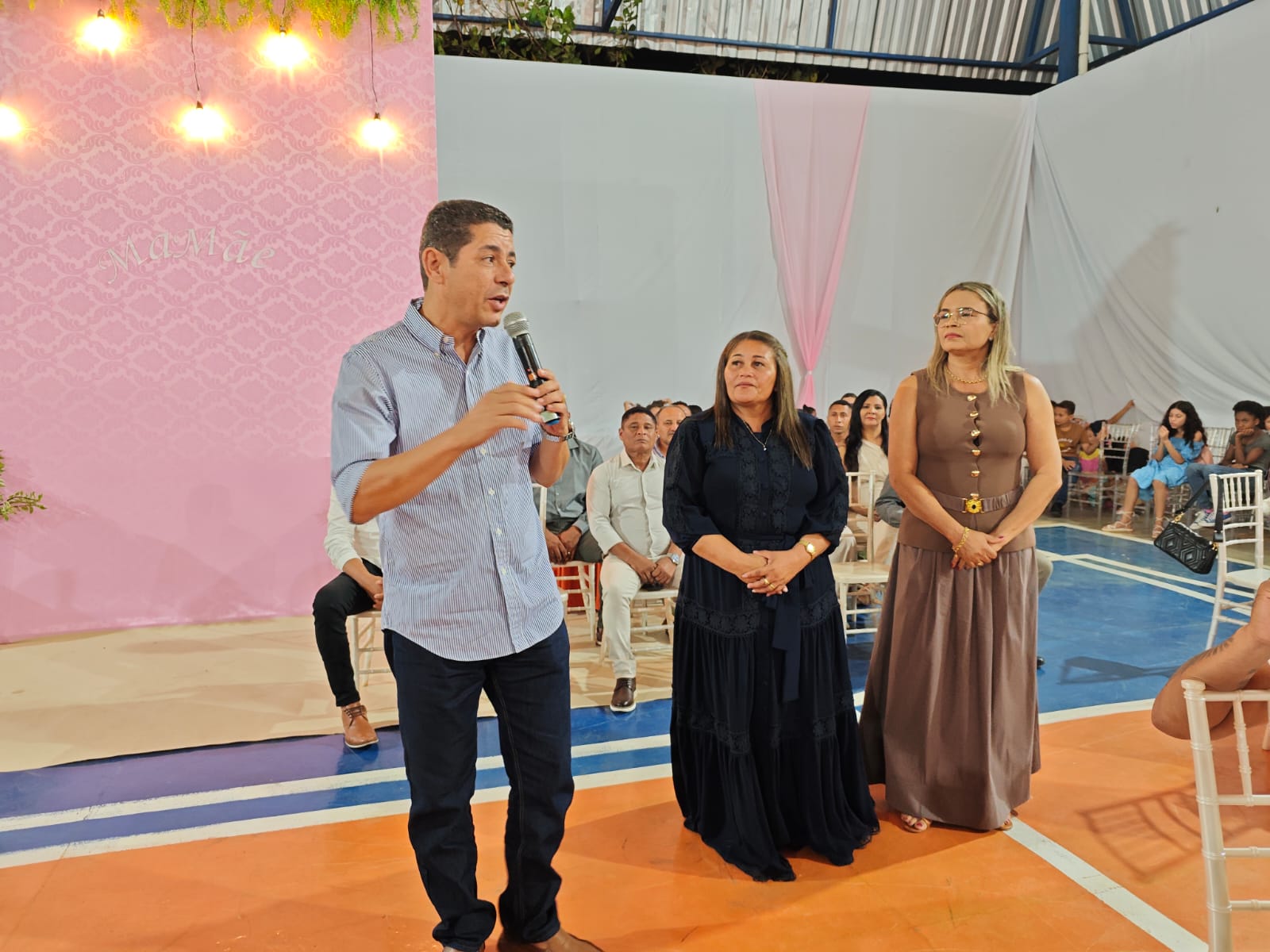 “Gratidão a Deus por estar aqui nesta noite especial, comemorando esse dia com vocês. Mas eu acredito que o Dia das Mães é todos os dias. Mãe é aquela que balança no peito, que bate com cipó, que puxa a orelha, que educa… é aquela que corrige em casa para que o mundo não machuque seus filhos. Sei que todas vocês fazem isso pelos seus”, disse o deputado, emocionado.