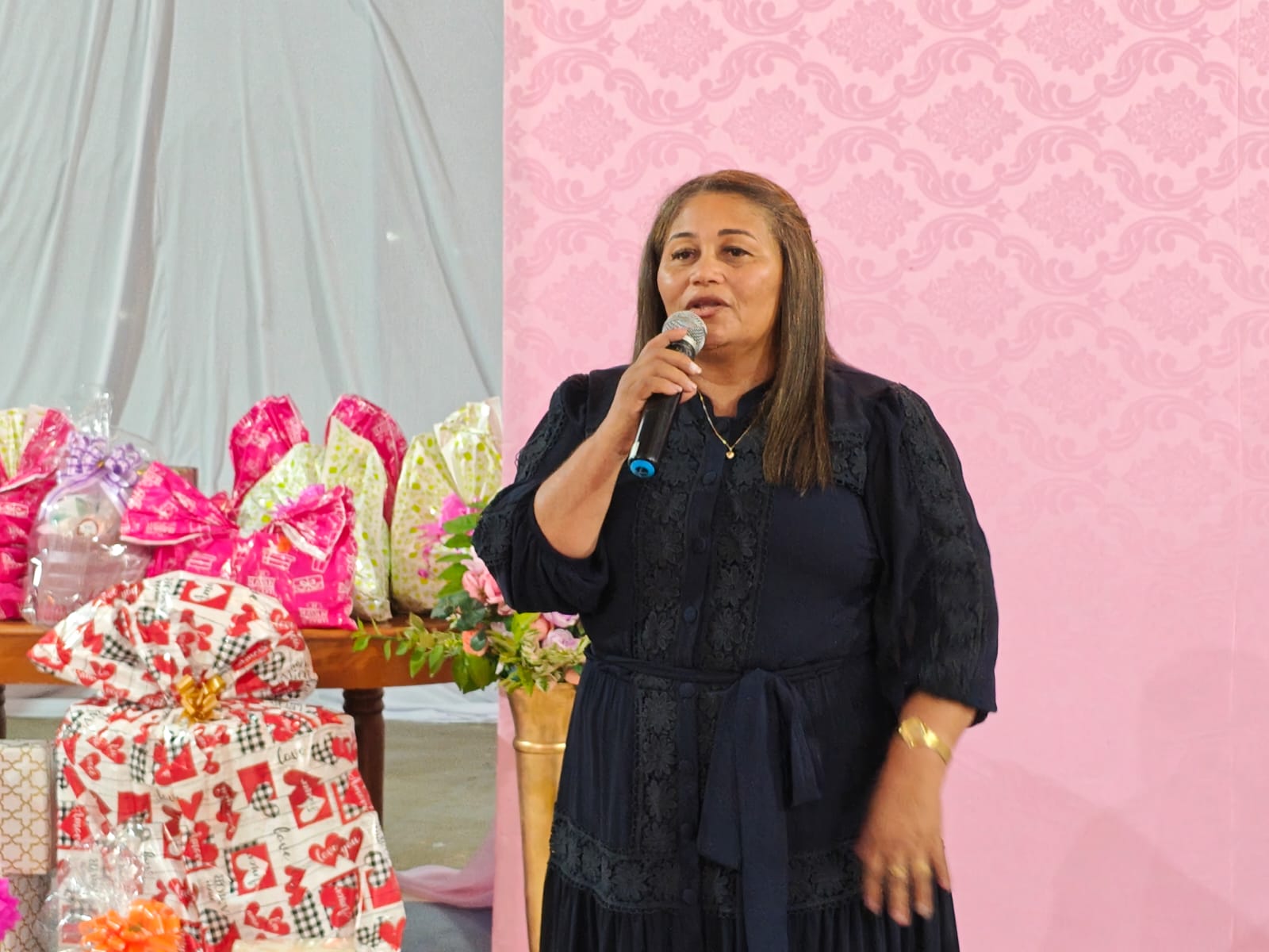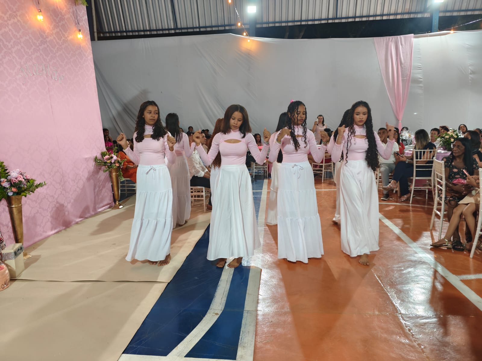 A programação teve início com a participação da pastora Rosânia, que conduziu um momento de oração, trazendo palavras de fé, esperança e bênçãos para todas as mães presentes. Sua fala emocionada e acolhedora envolveu o público em um clima de espiritualidade e gratidão.