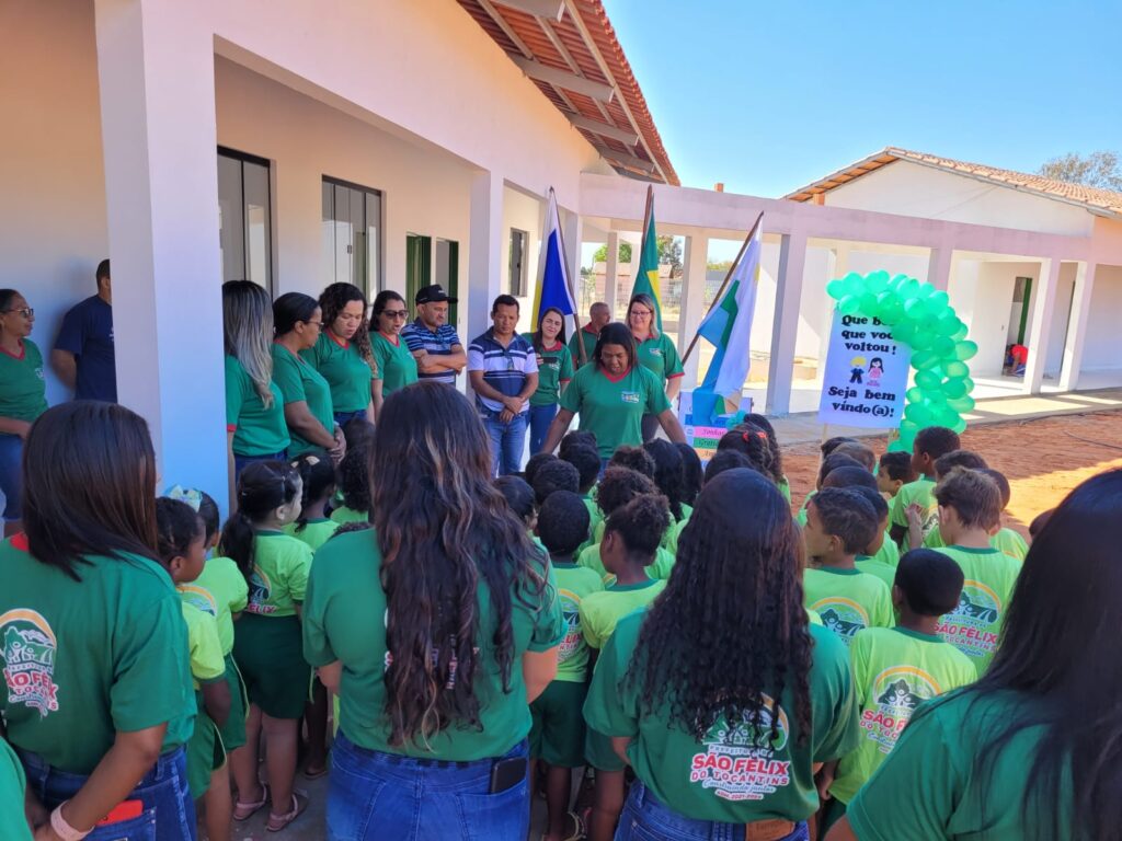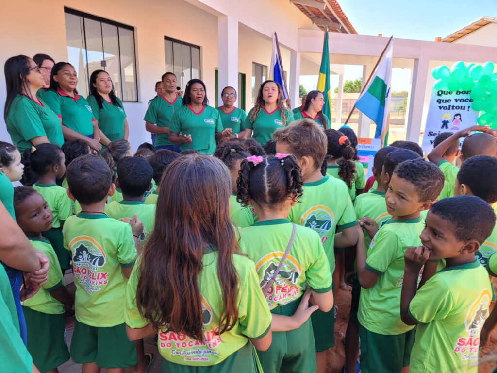 A recepção dos alunos foi feita com festa e alegria pelos professores, que acolheram os pequenos com balões e cartaz de boas-vindas. Discentes e profissionais uniformizados deixaram o momento ainda mais bonito, sendo aberto com o Hino Nacional e oração conduzia pelo pastor Leomar Arruda. A secretária municipal de Educação, Denise Cella, falou da emoção em participar de um momento tão importante para São Félix.