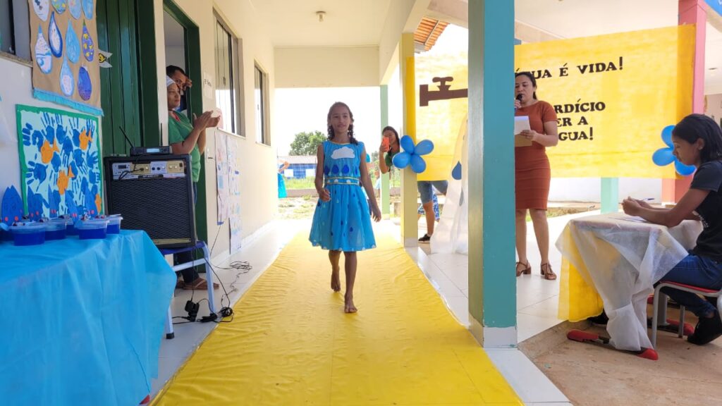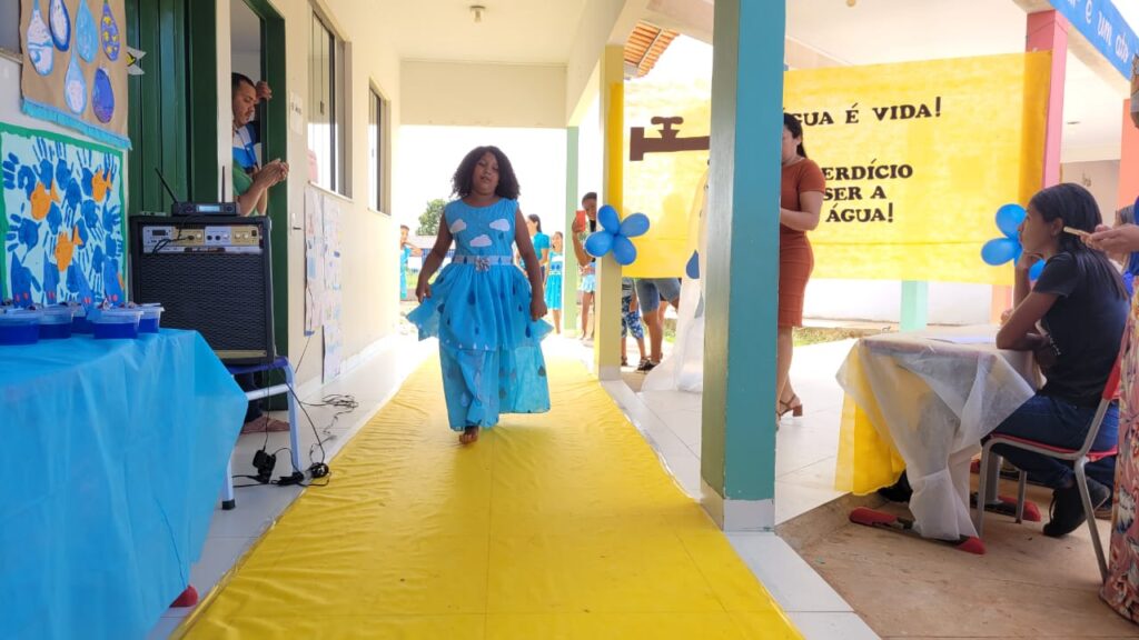 Um dos momentos mais animados da atividade foi um desfile com o tema da água, que contou com a participação dos alunos do 4º e 5º ano. Os estudantes deram um show de alegria e aprendizado na passarela, e todos receberam brindes pela atuação.