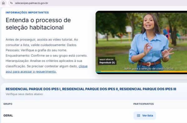 Prefeitura de Palmas lança site para consulta de informações e lista do processo de seleção do Residencial Parque dos Ipês