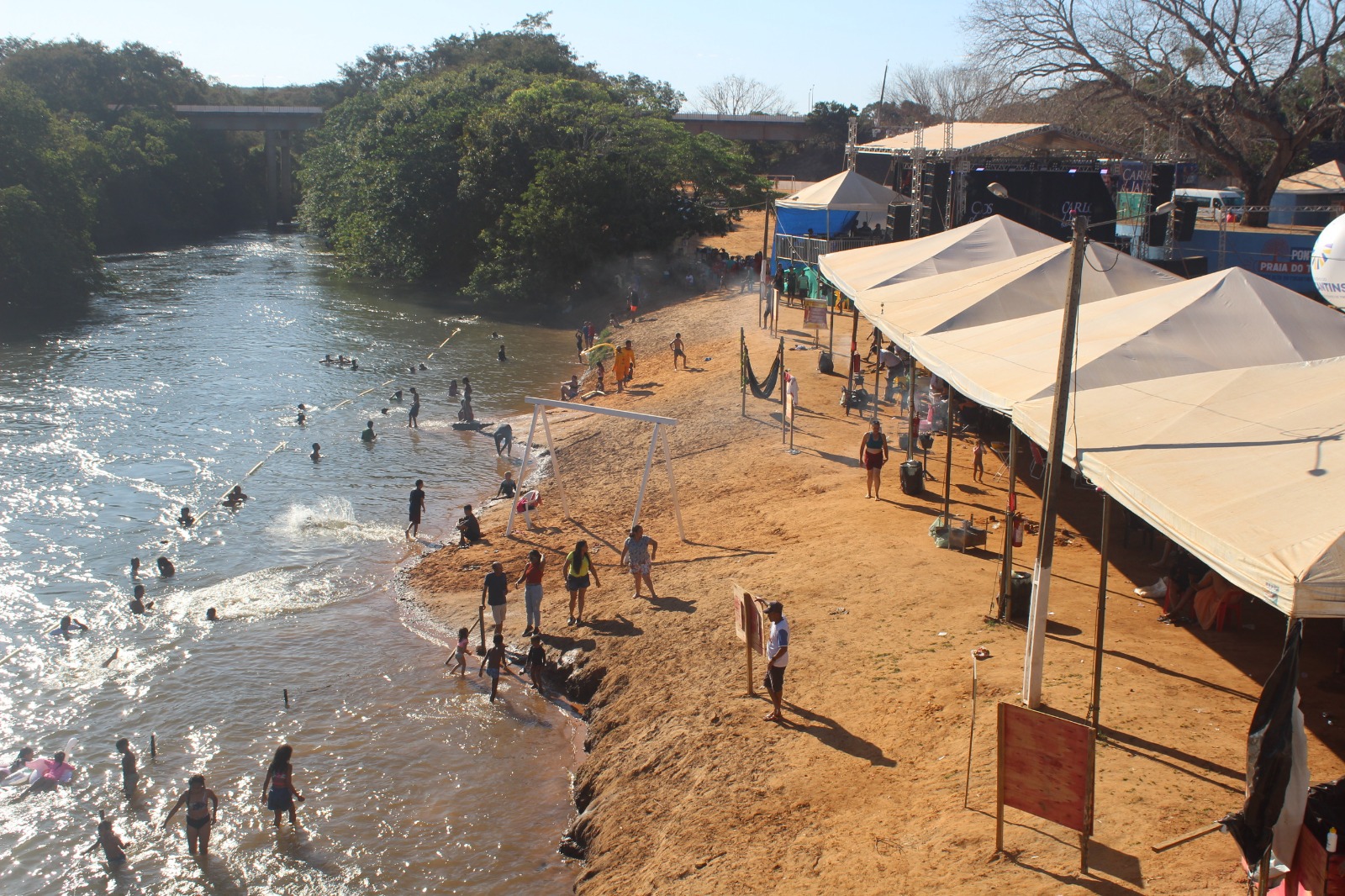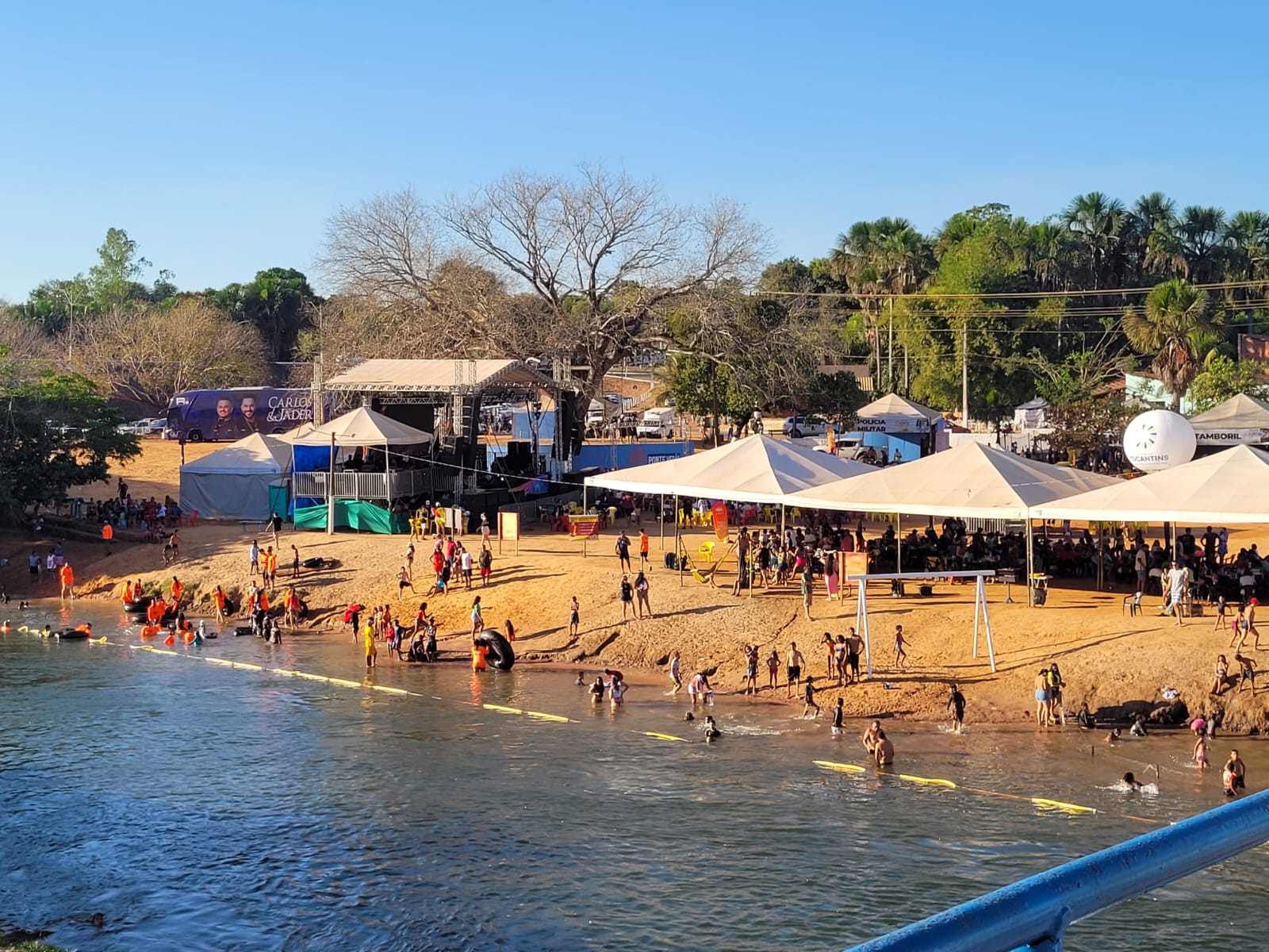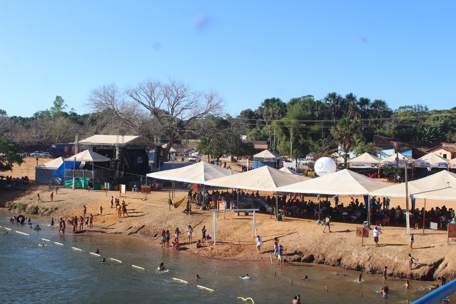 Sol, areia, água fresca e diversão marcaram o terceiro final de semana da temporada proporcionada pela Prefeitura, e tiveram um dos maiores públicos do mês até então, já que mais uma atração nacional, a dupla Carlos e Jader, se apresentou no palco da praia. Com o maior público do Jalapão, a Praia do Tamburi é também a maior da região, e recebe muitos visitantes.